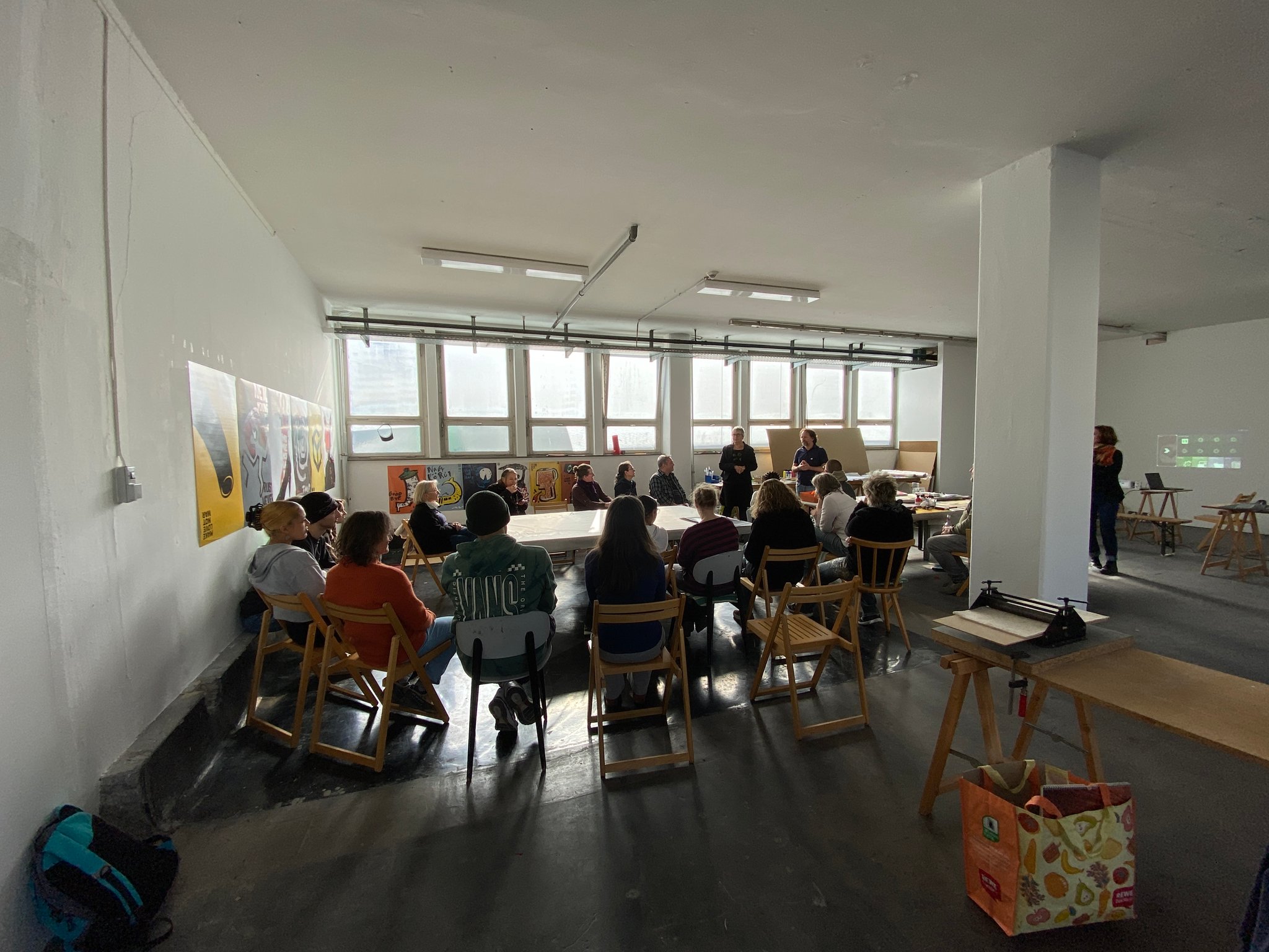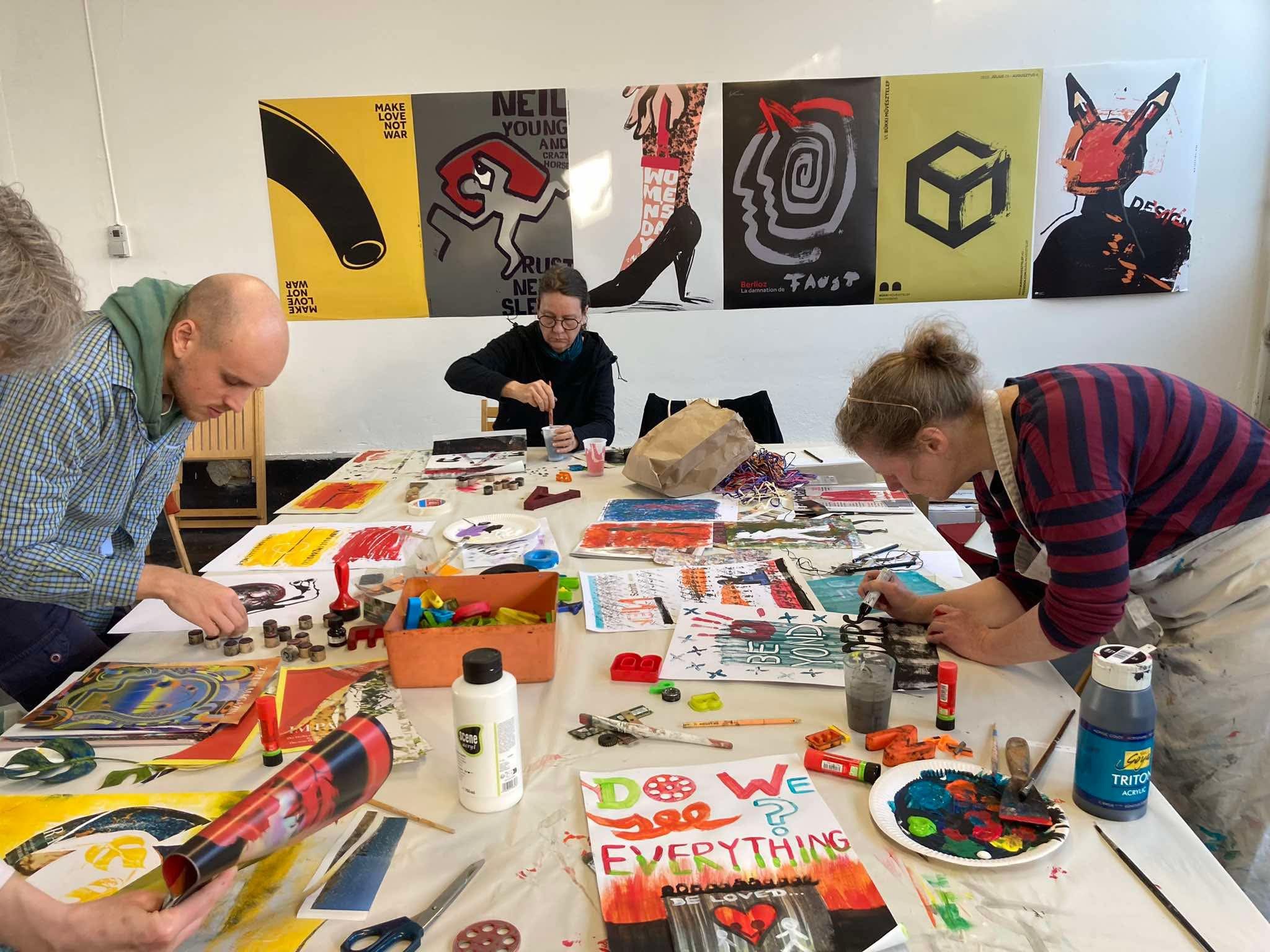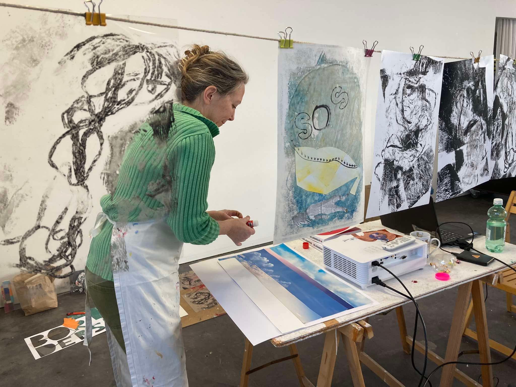 Die Verbindung zwischen diesen beiden Punkten schafft das Art Camp „Punkt-Punkt“ im Kunstverein Nürtingen. Das Art Camp ist über mehrere Tage Plattform für einen künstlerischen, grenzüberschreitenden Dialog. Die Künstler:innen arbeiten vor Ort miteinander, sie gehen mit der Sprache der Kunst in aktiven Austausch. Durch öffentliche Workshops werden Einblicke in die jeweiligen Kunstschwerpunkte gegeben.