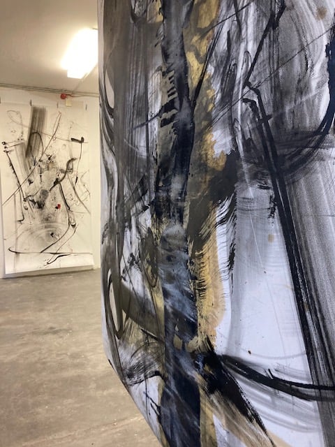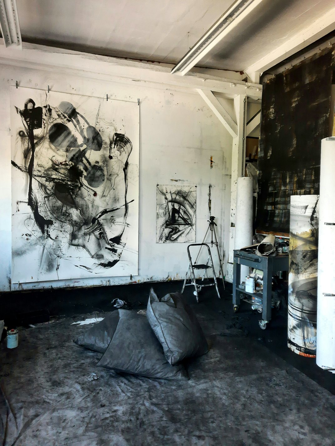 Ich möchte an dieser Stelle gerne einen kleinen Exkurs mit Ihnen unternehmen und Sie, zumindest gedanklich, mit in das Atelier des Künstlers entführen, da ich der Meinung bin, dass besonders hier seine Arbeitsweise deutlich wird und die Wirkmacht der künstlerischen Präsenz tatsächlich erlebt werden kann.
